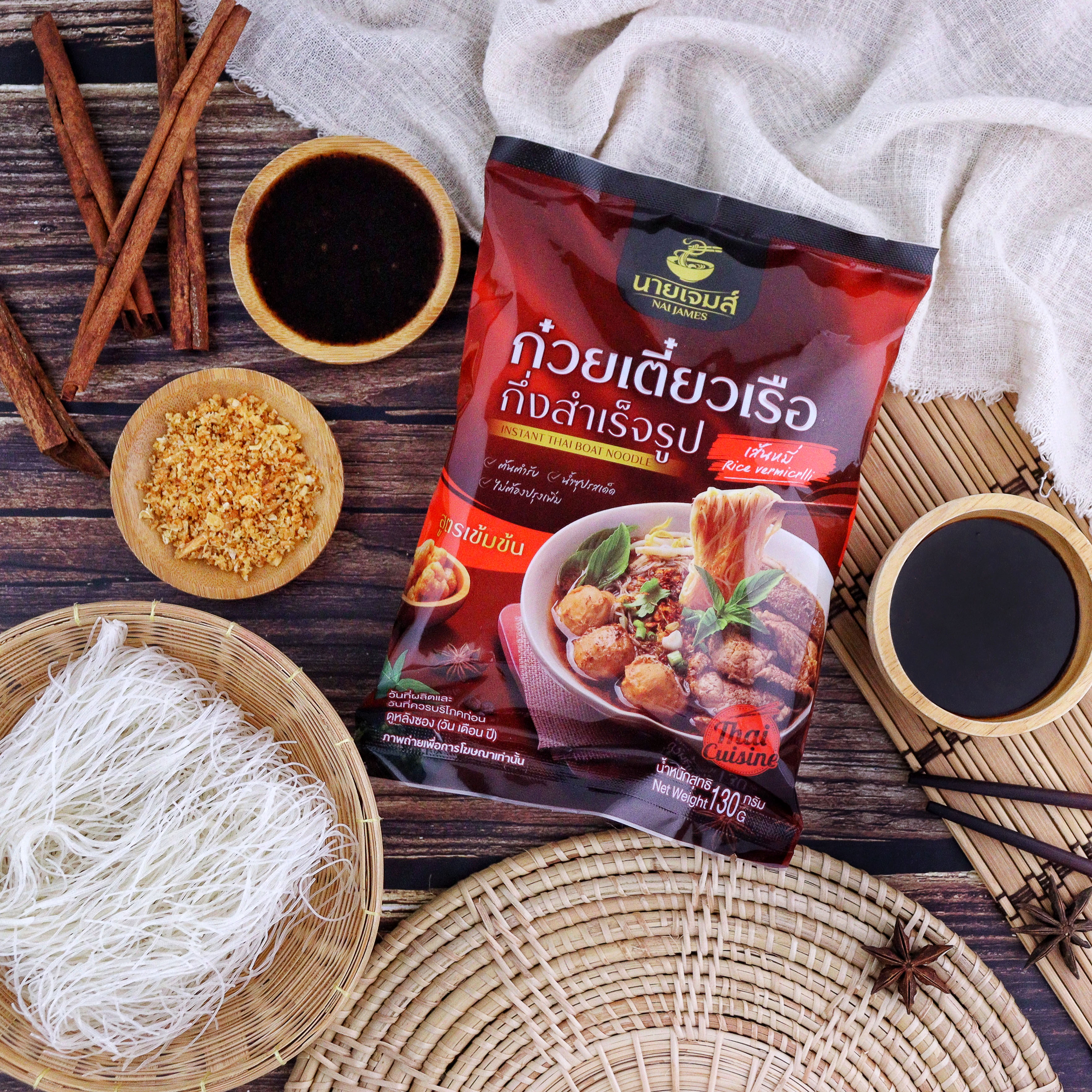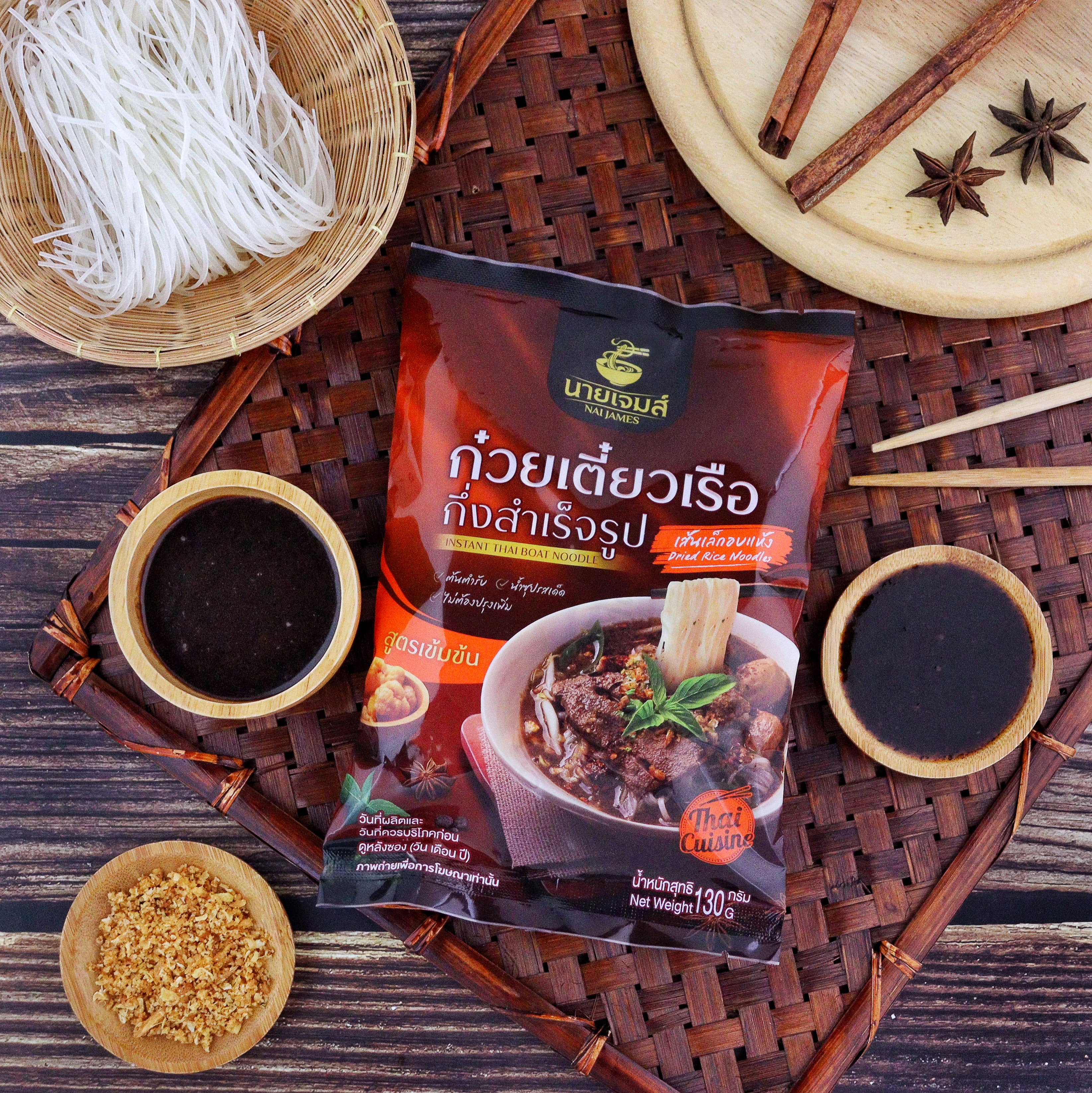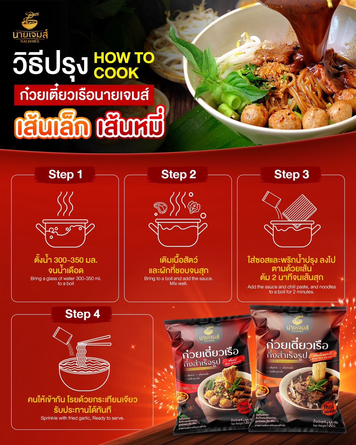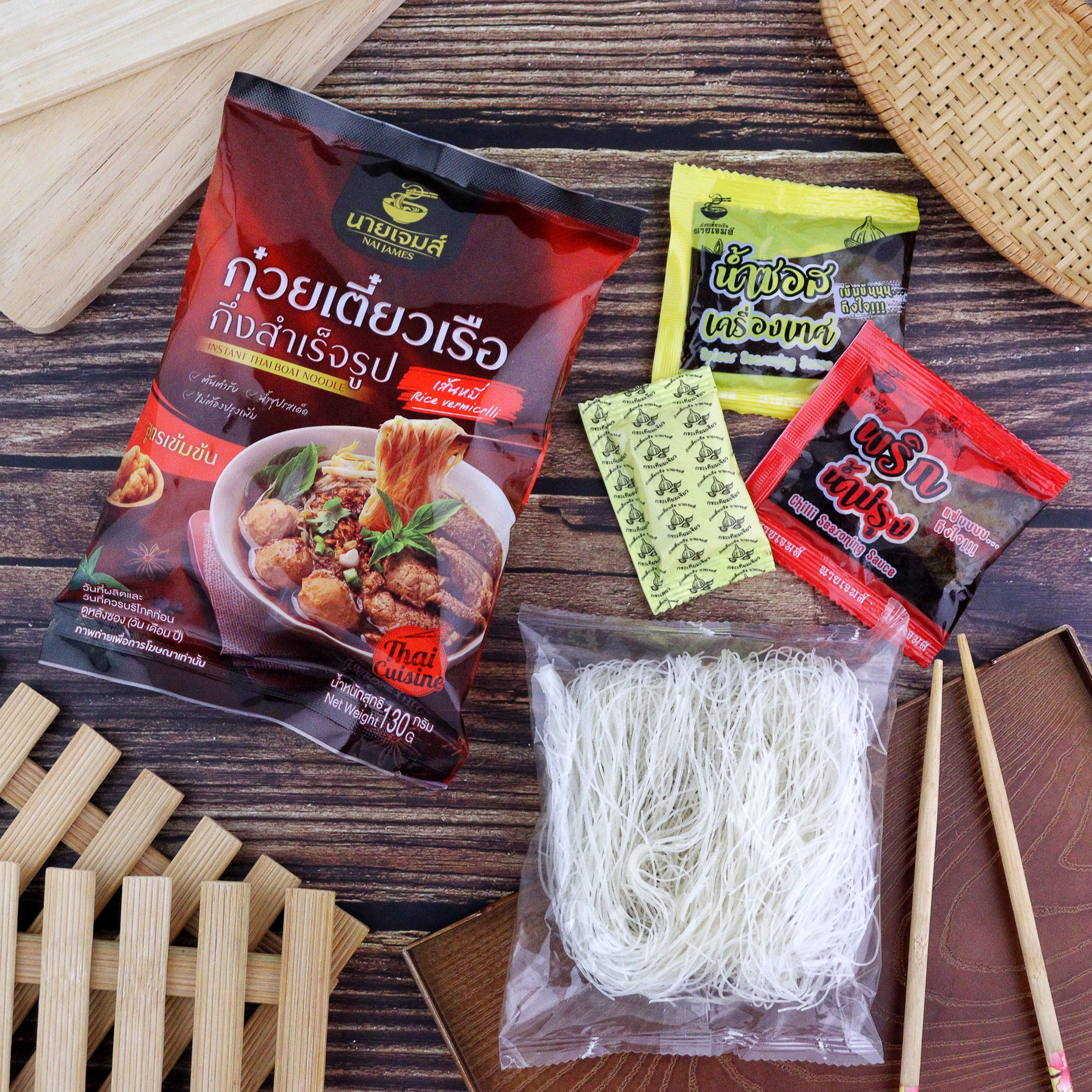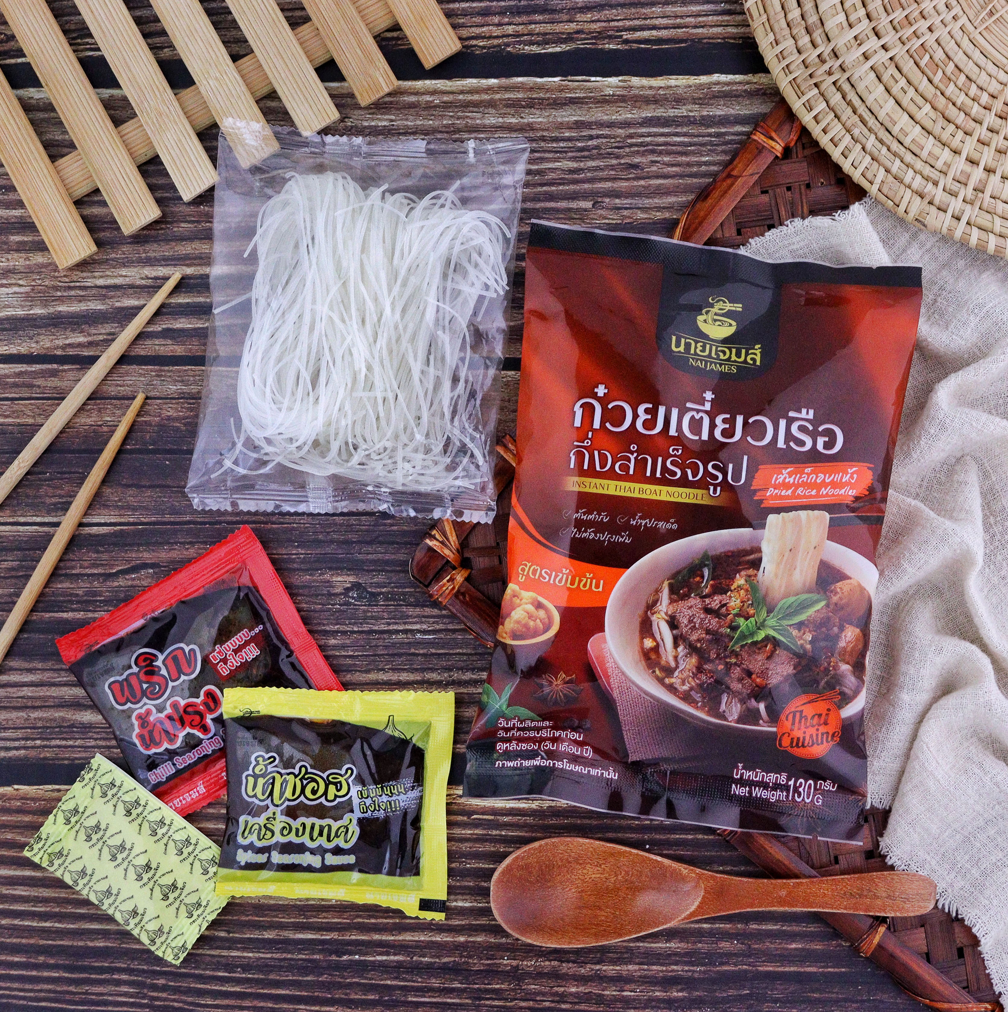 ก๋วยเตี๋ยวเรือกึ่งสำเร็จรูปนายเจมส์ รสชาติจัดจ้าน เข้มข้น กลมกล่อม ครบรส เส้นเหนียวนุ่ม ลวกง่าย น้ำซุปเข้มข้น ทางเรายินดีเป็นอย่างยิ่งที่คุณแวะมาเลือกชม สินค้าของเรา